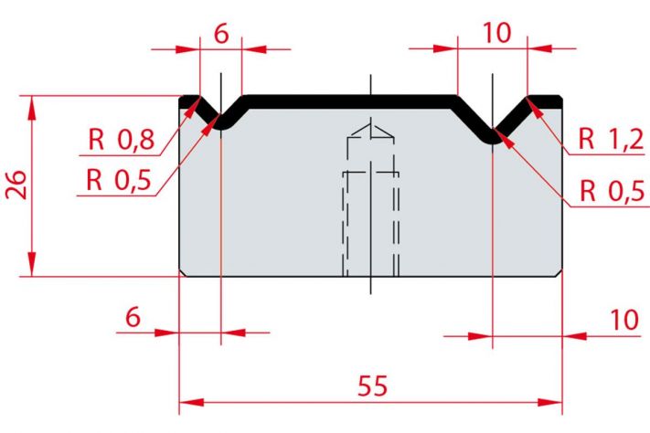 Cối chấn 2V 6/10 a=90º H26 Max. T/m=100