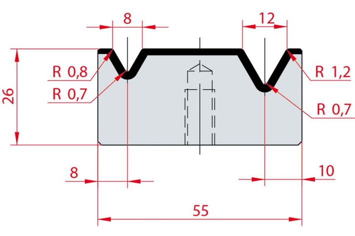Cối chấn 2V 8/12 a=90º H26 Max. T/m=100