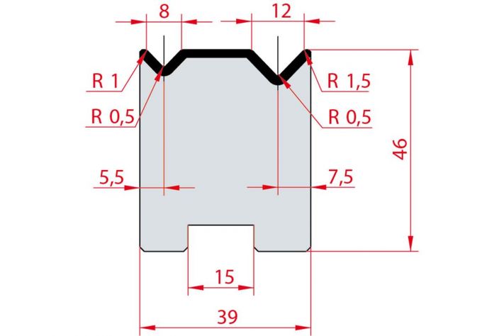 Cối chấn 2V 8/12 a=90º H46 Max. T/m=80