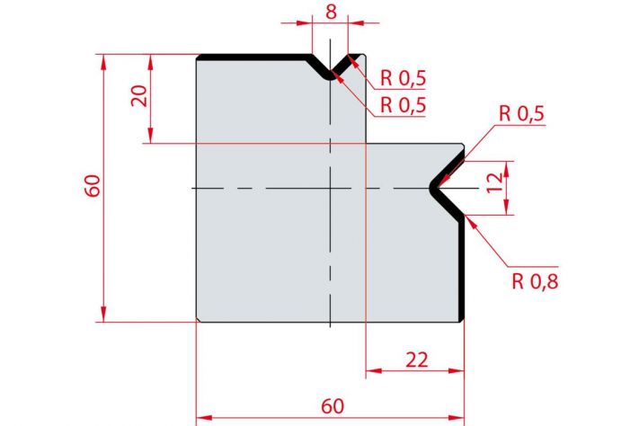 Cối chấn 2V L 8/12 α=90º H60 Max. T/m=80