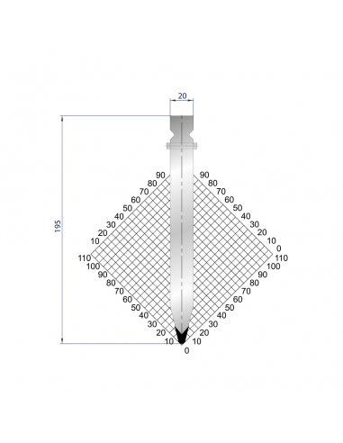 Dao chấn 28º, H=195, R=3 Max T/m=100, 42CrMo4