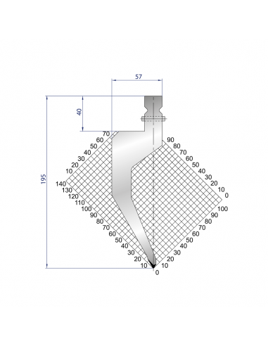 Dao chấn 28º, H=195, R=3 Max T/m=100, 42CrMo4