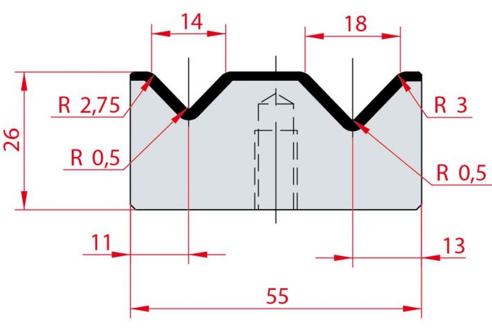 Cối chấn 2V 14/18 a=88º H26 Max. T/m=100