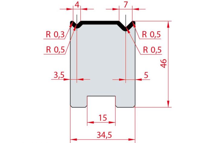 Cối chấn 2V 4/7 a=90º H26 Max. T/m=100