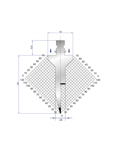 Dao chấn 28º, H=240, R=1 Max T/m=40, 42CrMo4