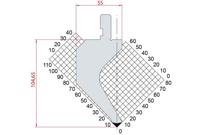 Dao chấn 90º 1016. H=104,65, R=0,8, Max T/m=50